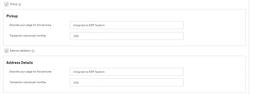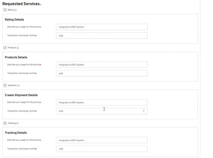 - Select and specify all requested services. Enter the estimated monthly transaction volume.