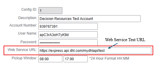 - For Test environments use the DHL Test URL https://express.api.dhl.com/mydhlapi/test