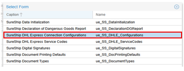 - In Infor SyteLine™ Open the Form SureShip DHL Express Connection Configurations.