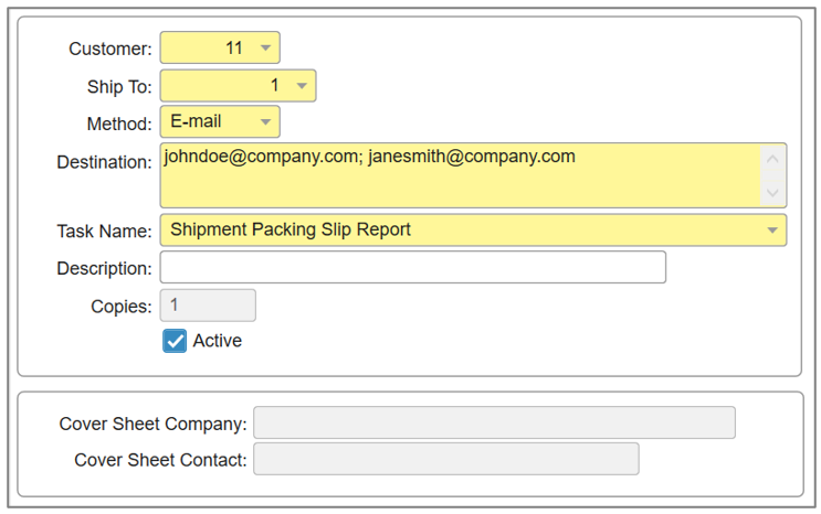 The Active setting is not retroactive. Recipients will not receive notification emails for any shipments finalized while this checkbox is disabled.Notification emails contain the following information: