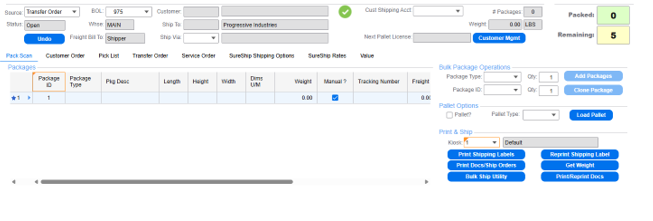 Introduction The SureShip Console can be used to create new Bills of Lading (BOL) against Customer Orders, Transfer Orders, Service Orders, and Pick Lists. BOL creation is the first step of the packing and shipping procedure. In the case of Transfer ...