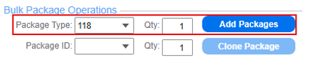 - In the Bulk Package Operations section select the Package Type and specify the Qty (quantity) of that package type for your items.