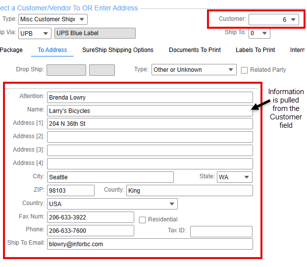 Select this option to process shipments using information (Ship Via, Shipping Account, Line Items) from an existing Customer Order. The ship-to information on the To Address tab