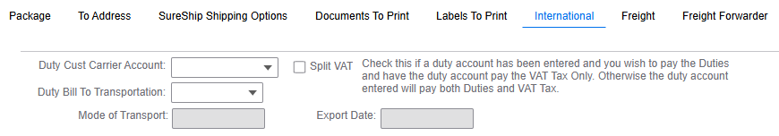 - Duty Bill To Transportation and Duty Cust Carrier Account: If the company is paying for the freight select prepaid. However, if the customer will be paying for the duties and taxes you would select the Collect from the Duty Bill Transportation drop down and select the customer carrier account from the Duty Cust Carrier Account drop down.