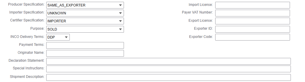- Specify the following to add information on a commercial invoice: